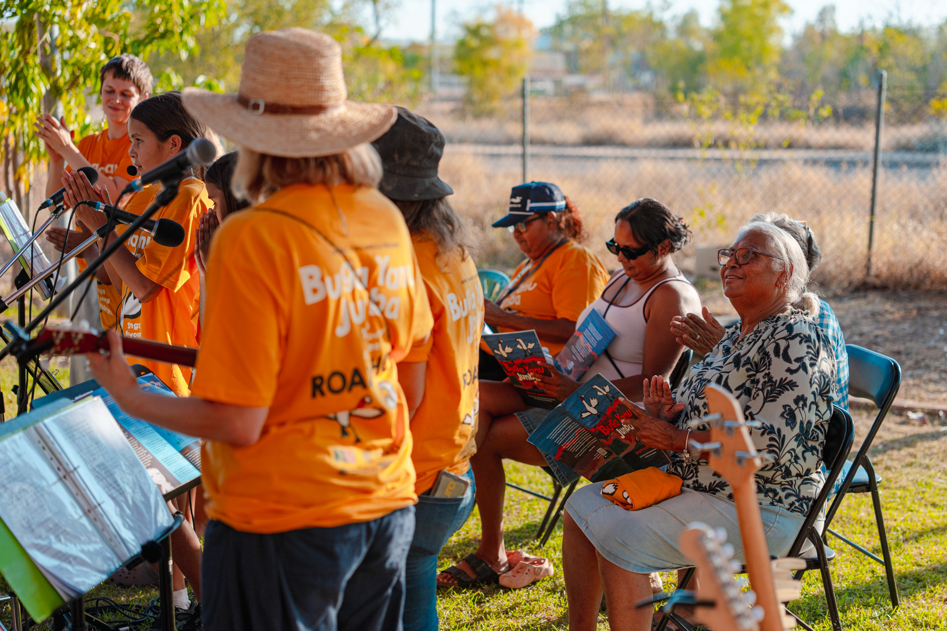 The songbook and album’s release was marked by a roadshow tour with Community performances and workshops, as well as an official Community launch at Baya Gawiy, featuring a smoking Ceremony and children’s performances.